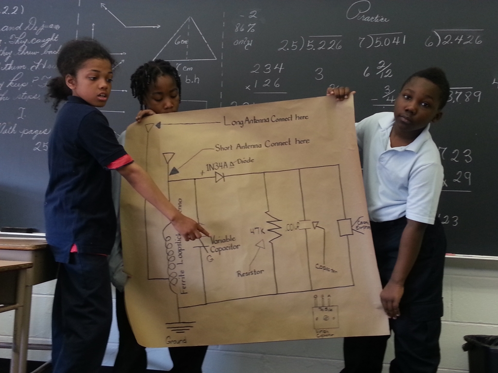 One kid in the audience asked, "Is this signal analog or digital? Are you using VHF or UHF?" - in 5th grade! Uncoached. Talk about a future ham!!!"