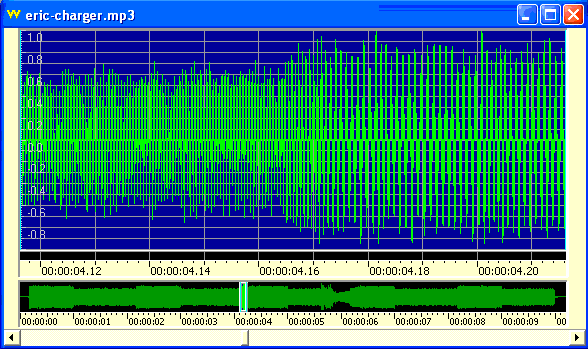 Notes: "This one had everyone stumped for a while. Narrow signal, about 1.5 kHz, audible only on sideband around 1845 and a few other close-by frequencies. It turned out to be a Sony charger for a Digital 8 video camera. The frequency on which the signals were heard seemed to drift very slowly up as the battery was charging. MP3 file attached. Thanks for the useful collection!"