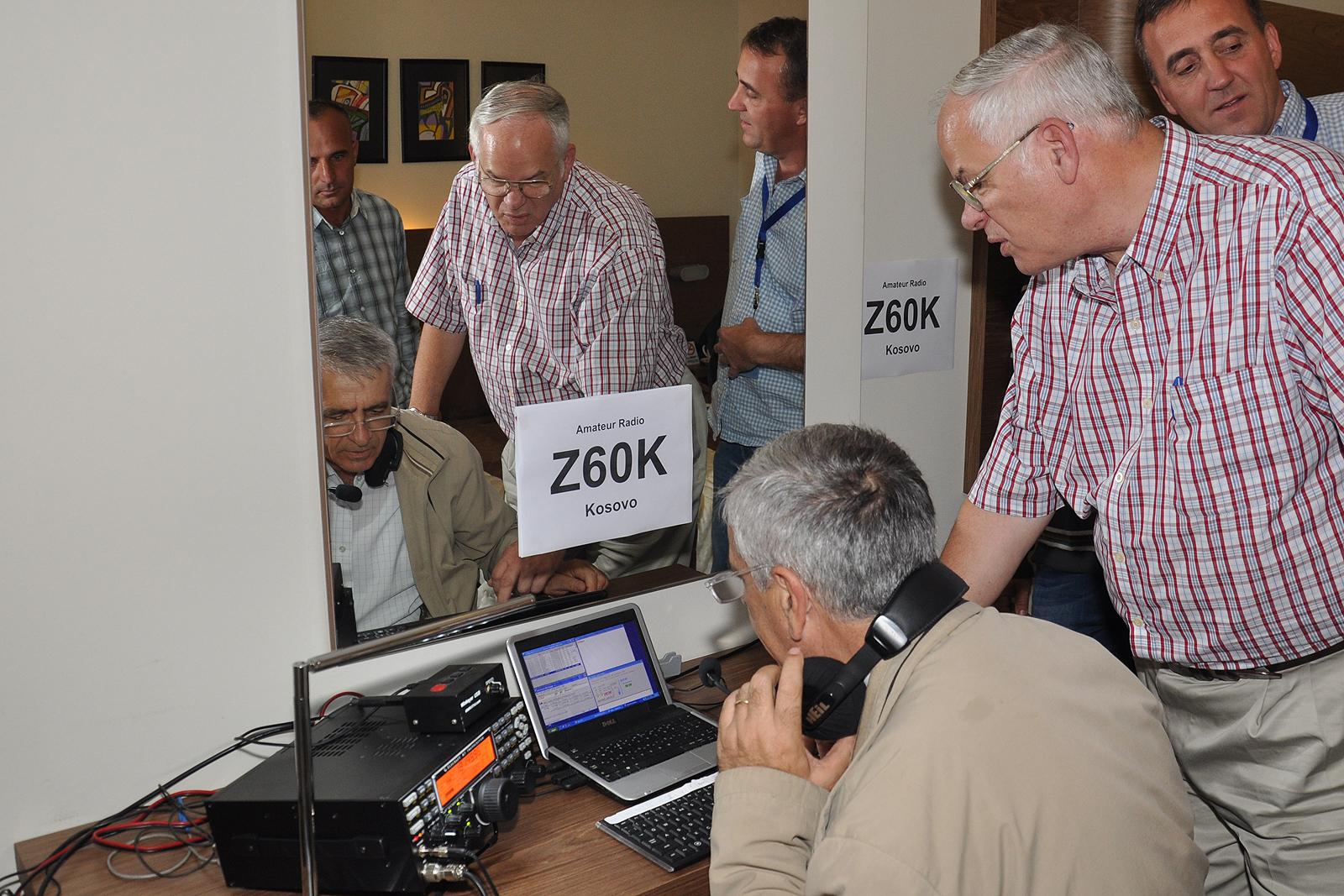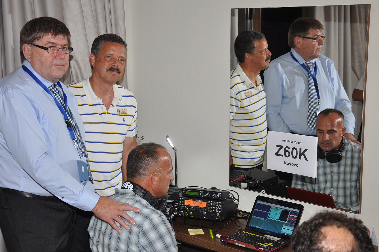 As part of the formal re-launch of Amateur Radio in Kosovo, the special event group call sign Z60K was issued to Hans as the IARU Region 1 President. The first QSOs with the new call sign Z60K were made by the new Kosovar operators themselves during the evening following the presentation of the new licenses. Unsurprisingly, after over two decades of absence from the bands, many were quite microphone-shy at first; however, that will soon wear off once they get used to modern Amateur Radio equipment -- and as they catch up on the latest techniques and Amateur Radio operating practices. The Z60K shacks set up in hotel rooms were frequently visited by the new amateurs (and other non-amateurs from government and industry), sometimes several times per day as their work schedules permitted, so they could become more familiar with operating.