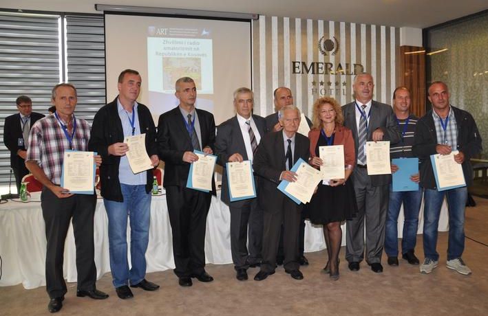 The undoubted highlight of our visit to Kosovo was attending a ceremony hosted by the Autoriteti Rregullativ i Telekomunikacionit (ART), Kosovo’s telecommunications regulatory authority, where the first of the country’s new Amateur Radio licenses were awarded. These licenses were no ordinary licenses. These radio amateurs are no ordinary radio amateurs. Most of them had been off the air for the past 23 years or more, and each was keen to get back on the air again, following Kosovo’s move into the new era of full sovereign statehood on September 10, 2012.