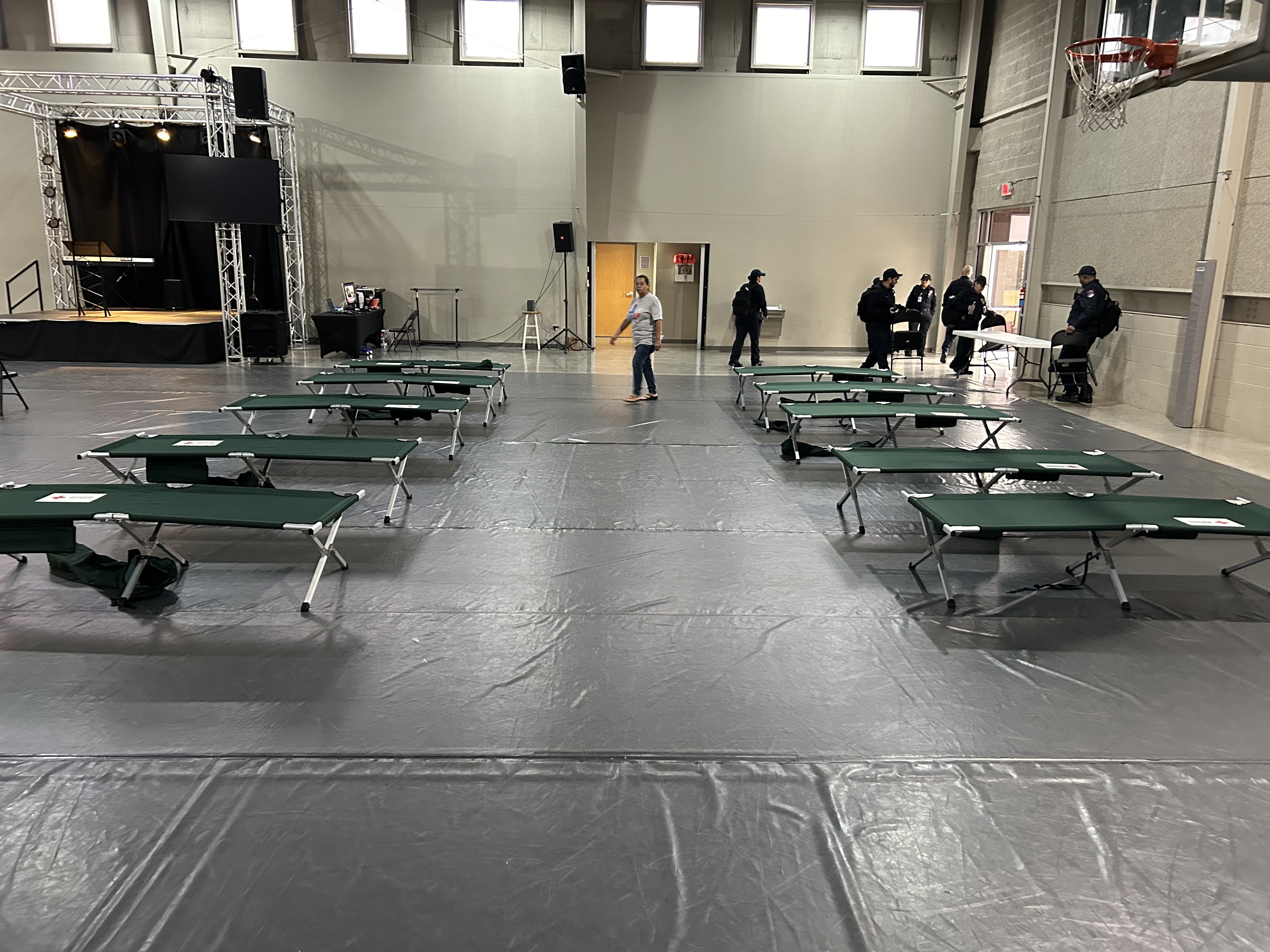 ARES members helped the American Red Cross with setup of a reunification shelter in response to the floods. Ten hams were assigned to search-and-rescue teams.