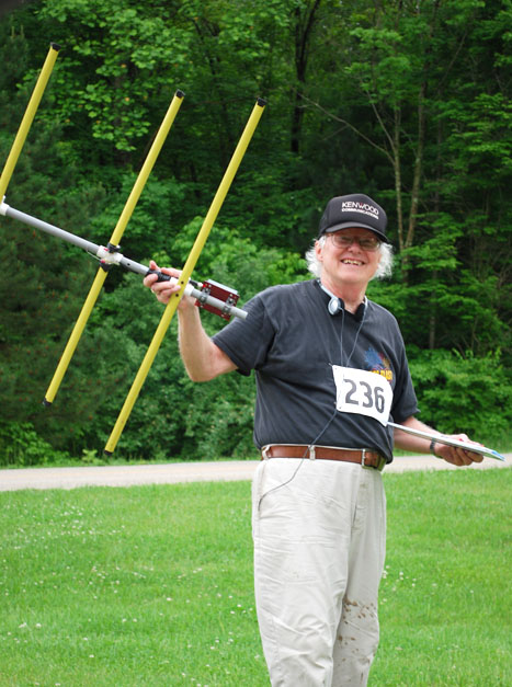 Saturday’s 2 meter event was in Hueston Woods State Park, about four miles east of the Ohio-Indiana border near the town of College Corner. Heavy rain the previous evening had made the trails very muddy, but that didn’t slow down Bryan Ackerly, VK3YNG, of Ferntree Gully, Australia. His marathon training made him the fastest of the day, finding all five 2 meter foxes and getting to the finish in one hour and 24 minutes. USA’s fastest in that category was Ian Smith of Somerville, Massachusetts, who finished just 20 minutes later, at 1:44.