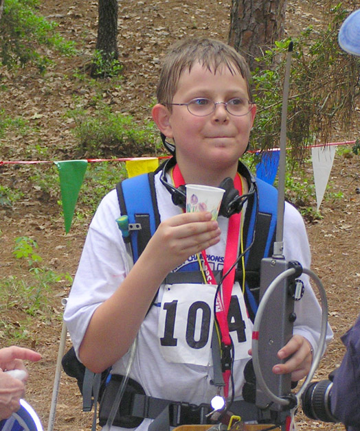 "Texas is supposed to be flat!" Those were the first words of Nadia Scharlau after she crossed the 2 meter finish line at the 2008 USA Championships of Amateur Radio Direction Finding (ARDF) on May 9. She had just earned another gold medal to add to her collection by finding her four required "fox" transmitters on a surprisingly hilly 6.6 kilometer course in Central Texas.