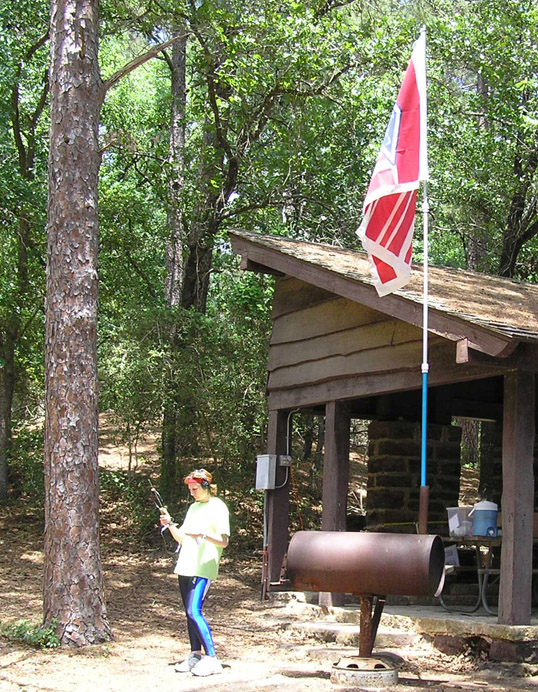 Ken and Jen live in Austin, about an hour away from Bastrop State Park, a favorite venue for events of the Houston Orienteering Club. Bastrop was an obvious choice for the championships site, but also a very good one. With rolling terrain and woods full of loblolly pines, this well-mapped park is an ideal ARDF venue. Locals call these trees the "lost pines" because they are separated by 150 miles from the piney woods of East Texas.