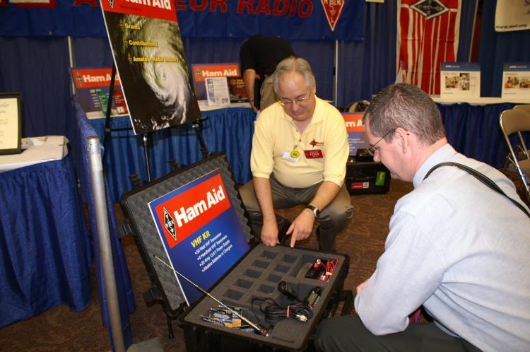 ![ARRL Emergency Preparedness and Response Manager Dennis Dura, K2DCD (left), shows John Ronan, EI7IG, a Ham Aid VHF Go Kit at the 2007 ARRL National Convention in Huntsville, Alabama. [S. Khrystyne Keane, K1SFA, Photo]](/img/130x97/exact/News/nms_384.jpg)