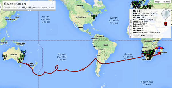 Following its launch, the balloon had traveled east across the southern tip of New Zealand, across the Pacific Ocean to South American and then to southern Africa. To return home, PS-30 would have had to cross Madagascar, the Indian Ocean, and part of Australia.