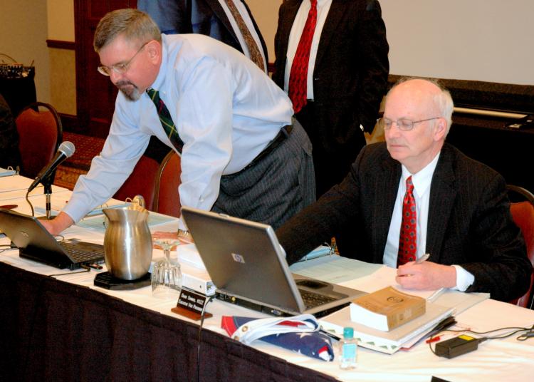 ![ARRL General Counsel Chris Imlay, W3KD (left) and ARRL Chief Executive Officer David Sumner, K1ZZ, review the day's agenda during the 2010 Annual Meeting. [Steve Ford, WB8IMY, Photo]](/img/130x97/exact/News/BoardImlaySumner.jpg)