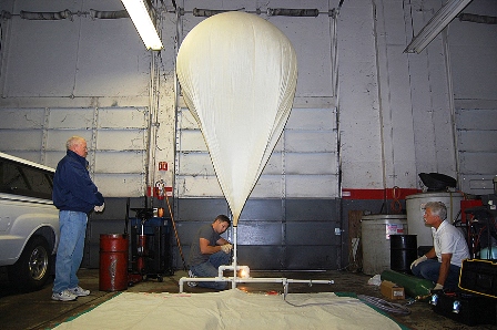It was at this point that Ron decided to launch a world record altitude attempt. Ron and Lee made several attempts with different sized balloons, both helium and hydrogen, and each of these flights provided additional information on the effect of neck lift (the lift needed to carry the payload) to payload weight. Also, they were able to keep track of the effectiveness of different balloon size and manufacturers from 1500 to 3000 grams.