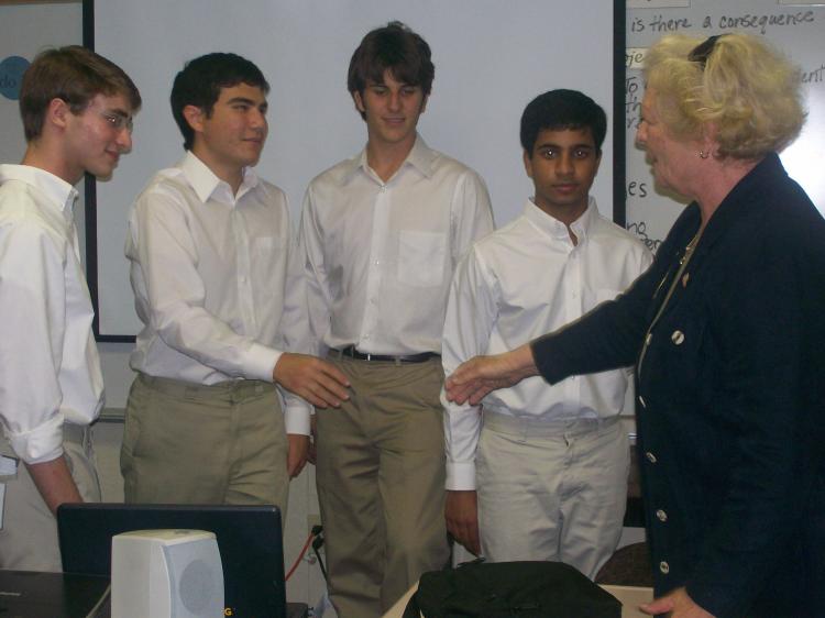 As a result of the presentation Long Beach resident Sibyl Kerns, KA6RXX, presented four brand new dual band radios to Dean, KI6CUX; David, KI6UXJ; Charles, KI6YDE, and Saleem, KI6HCM. With these dual band radios, the students will be able to check into emergency nets and gain critical skills in radio procedures. The generous gift will allow them to monitor Amateur Radio frequencies both at school and at home. Three of the team members will be leaving for college next Fall and intend to take their radios with them to volunteer with their university Amateur Radio teams.