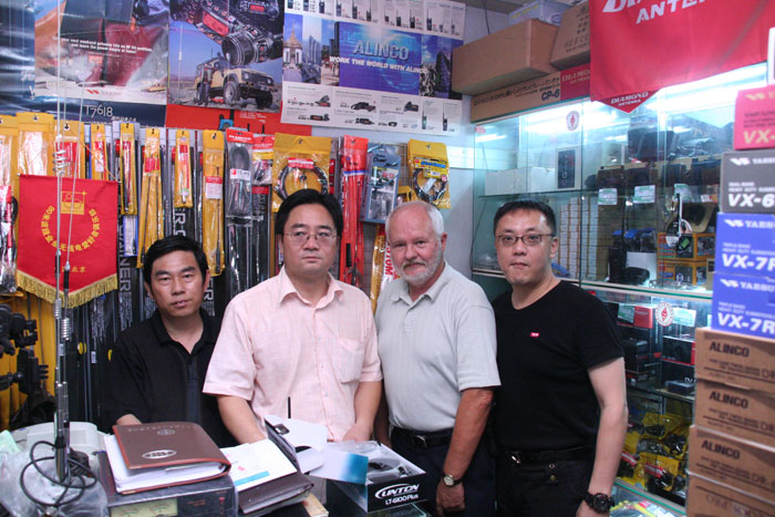 In the past, China may have lacked having equipment available for the local ham to use, but that has changed. There has been a dramatic change in attitude by the government in this area. One day Min called me at the hotel and said he wanted to take me on an excursion of local ham radio hangouts in Beijing. It was wonderful. I thought I was in Tokyo. He took me to an area of Beijing just cluttered with electronic stores. His favorite store was one operated by Mr Ping Lee, BG1JDW. Unlike many of the stores around him, Mr Lee's store carried only Amateur Radio equipment. Mr. Lee was very accommodating and helpful. He allowed me to interview him about his store and the past history of Amateur Radio in China. Mr Lee is a very active member of CRSA and owns multiple stores devoted to ham radio. At the conclusion of our interview, Mr Lee presented me with a CRSA world map depicting all the call sign areas of the world. He expressed an interest in meeting other US hams and invites anyone visiting Beijing to visit his store. The local phone number for his main store is 13901146177.