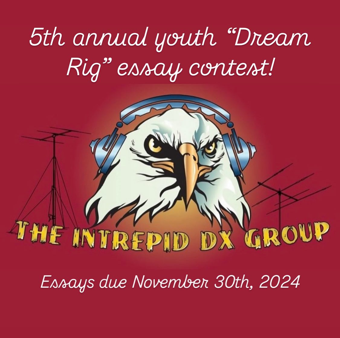 The essay, in plain text, PDF or MS Word attachment, should be sent to intrepiddxgroup@gmail.com or mailed to: The Intrepid-DX Group, 3052 Wetmore Dr, San Jose, CA 95148, USA. Entries must be postmarked by November 30, 2024.