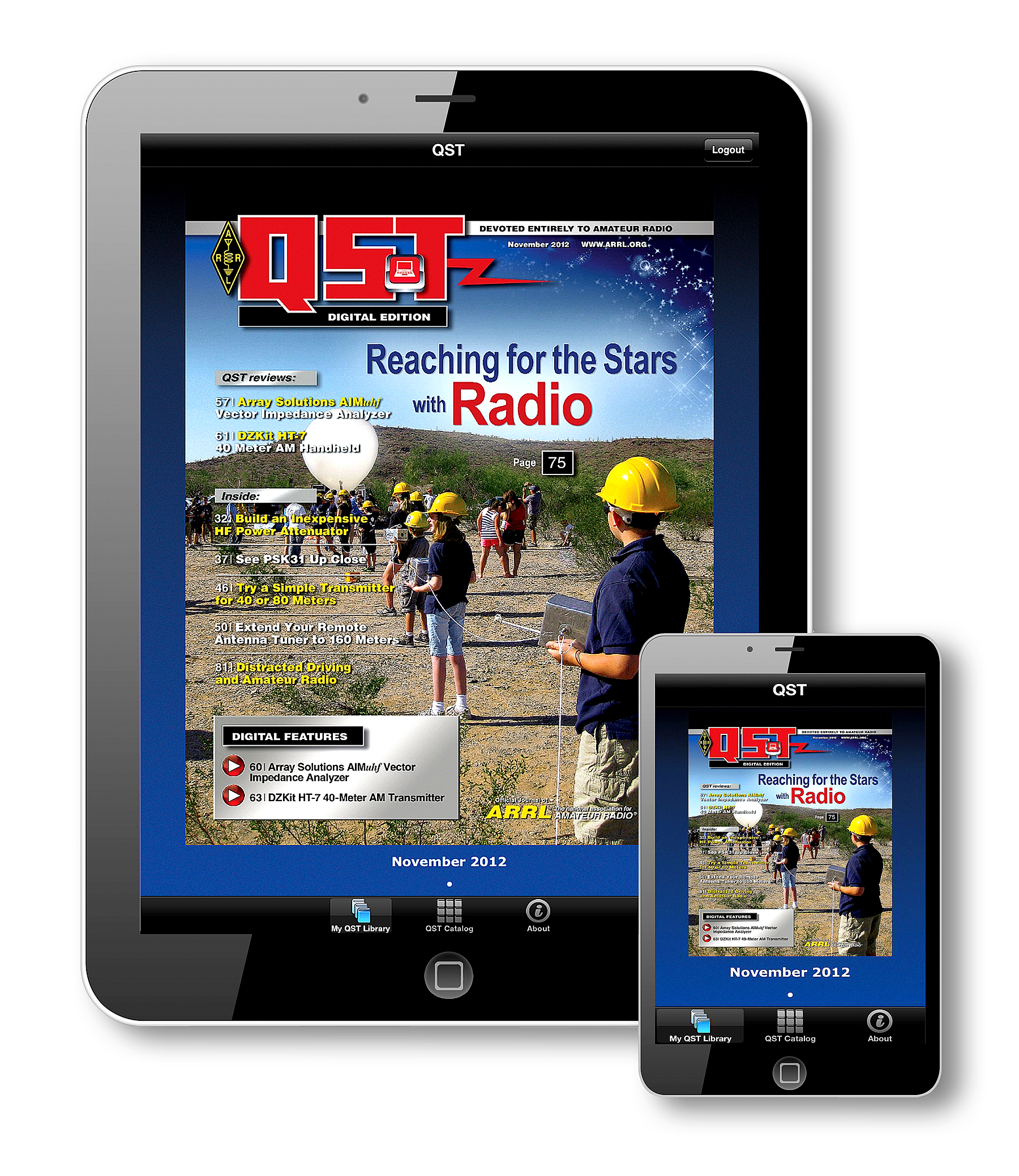 ARRL members who use Apple iOS mobile devices -- iPhone, iPad and iPod Touch -- can now download a new dedicated app to access and browse all issues of the digital edition of QST. This app allows ARRL members to read QST online or download individual issues of the journal for offline reading. This free app is available to ARRL members in the Apple App Store.