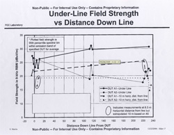 A study regarding Access BPL showed the same thing, but all information had been redacted from the file, leaving just a blank page. The unredacted study concluded that "The tested overhead PLC devices do not act as point sources. Emission from line shows virtually no decay 230 m from coupler. Differential two-wire signal injection affects the polarization of radiated emissions from overhead devices."