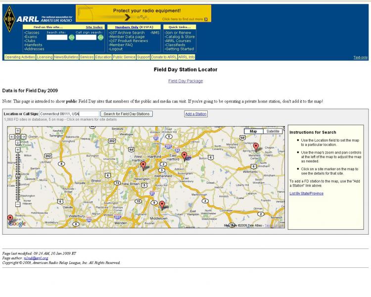 If you are looking for a Field Day site to attend, or are looking to publicize your Field Day site, be sure to check out the Field Day Site Locator. For more information on this service, please check out the Locator Site Frequently Asked Questions (FAQ) Web page. "More than 1000 Field Day sites have been registered on the Locator, with more being added every day," Henderson said.