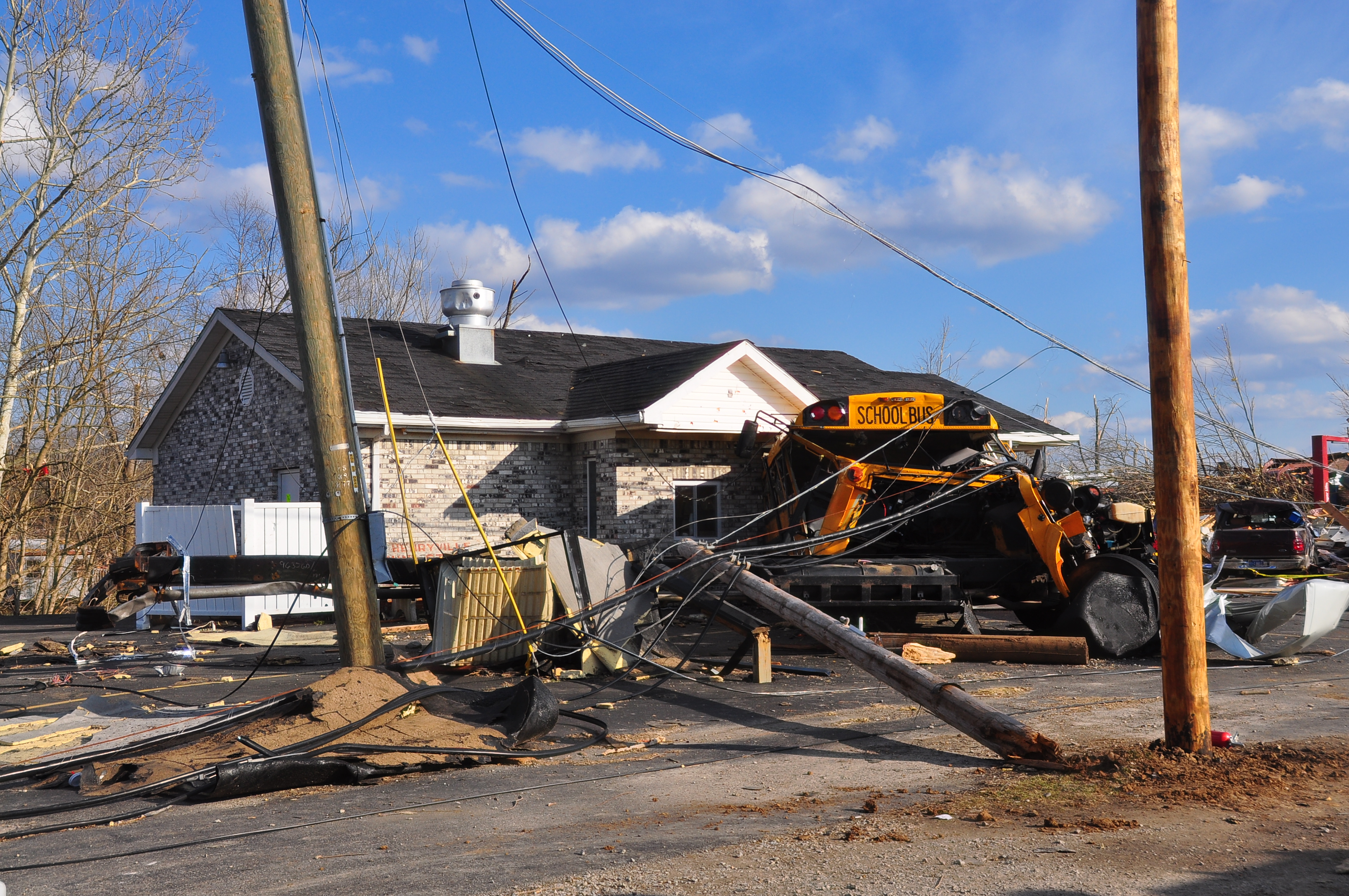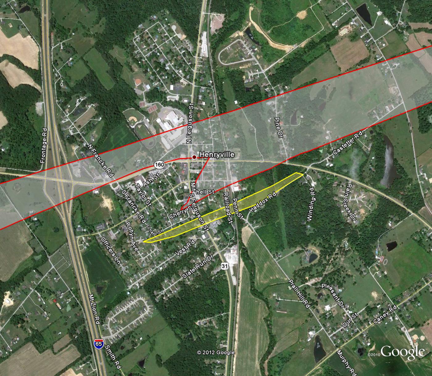 “After the storms passed, we started receiving reports of massive destruction in the Henryville and Marysville Indiana areas,” Brady told the ARRL. The National Weather Service reported that an EF4 tornado -- with estimated wind speeds of 170 miles per hour and a damage width of one-third of a mile -- swept through the town of Henryville, located in the northwest portion of the county. This tornado destroyed hundreds of homes and killed 11 people. Not more than an hour later, another tornado, an EF1 twister, came through town.