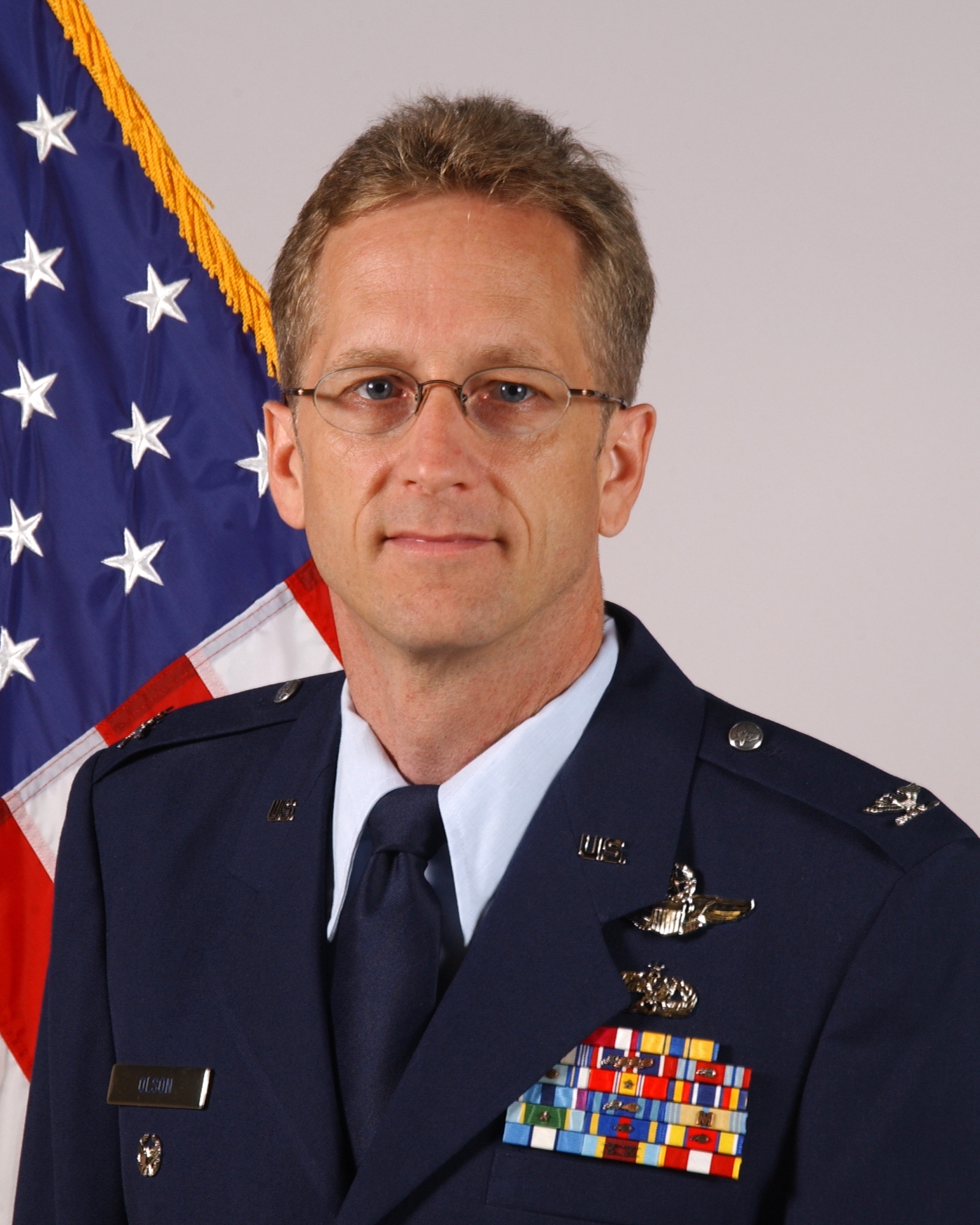 While still in high school, Olson enlisted in the North Dakota Air National Guard (119th Wing) as a Munitions Systems Specialist. After basic training, he worked on guided missiles for the F-4 (Phantom II). After completing his degree at North Dakota State University, he was selected to become a Weapons Systems Officer (WSO) in the F-4 and became a commissioned officer. "I did that for a couple of years until the unit converted to the F-16 (Fighting Falcon). I then was able to go to pilot training and became an F-16 pilot in 1991. I have held a lot of positions in the Wing and am now the Vice Wing Commander with the rank of Colonel." He has more than 3100 hours in the cockpit.