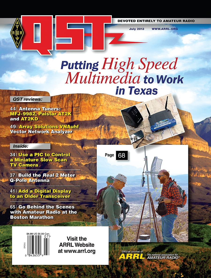 The winner of the July QST Cover plaque award is Lynn Jelinski, AG4IU, for her article "A Broadband Ham Network Crosses the Finish Line." The QST Cover Plaque Award -- given to the author or authors of the most popular article in each issue -- is determined by a vote of ARRL members on the QST Cover Plaque Poll web page. Cast a ballot for your favorite article in the August issue today.