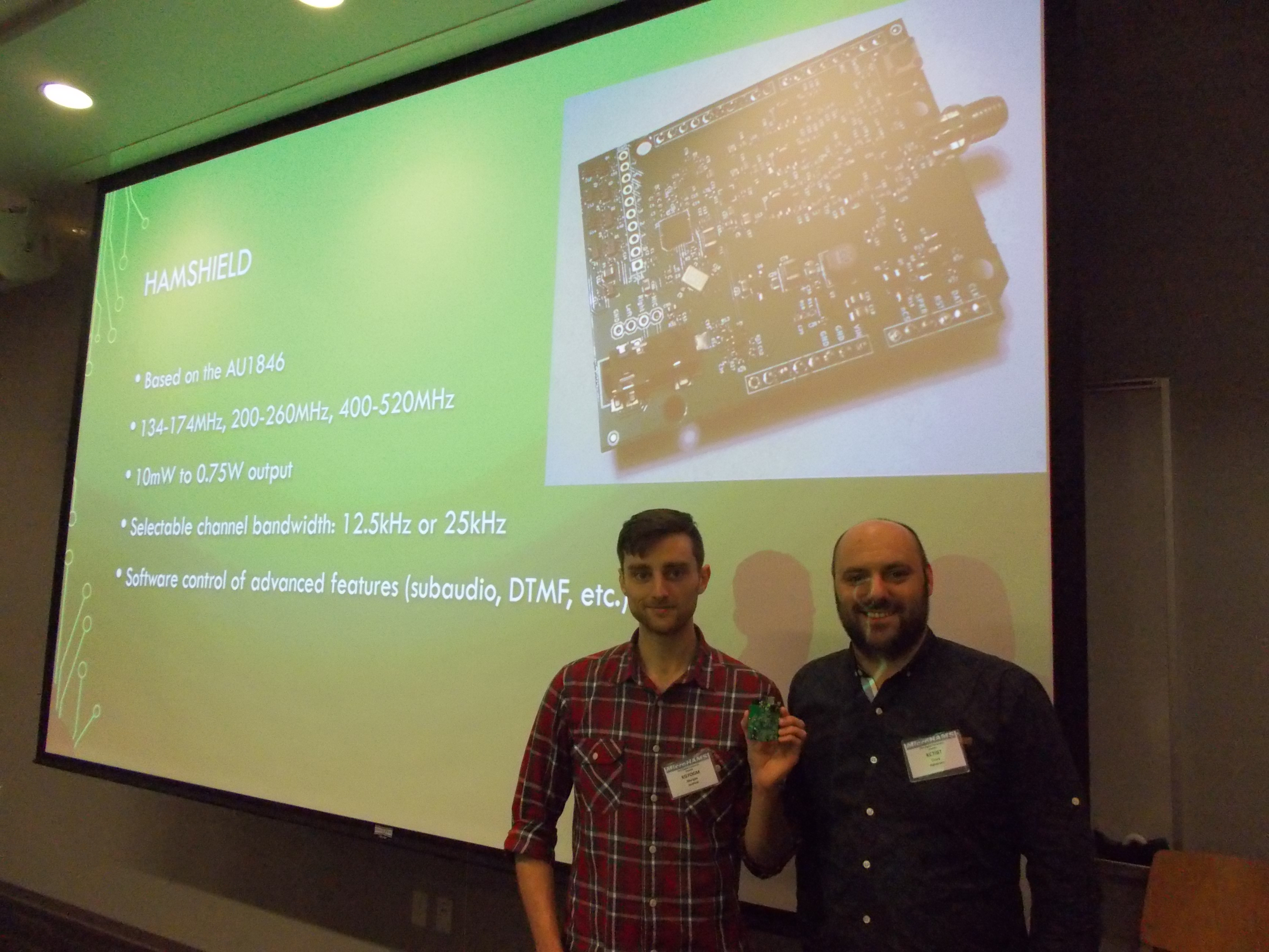 Two fully digital radios in late prototype stages also were shown. The HamShield by Morgan Redfield, KG7OGM, and Casey Halverson, KC7IBT, is not only a 144/222/432 MHz handheld based on the Arduino, but the project was funded through Kickstarter. The presentation was as much about the trials and triumphs of funding development as it was technical. Local company Northwest Digital Radio’s Universal Digital Radio UDRX is in pilot production after a long development and will have product available at Dayton Hamvention.® The 440 MHz transceiver is built to handle a wide variety of digital protocols and modulation types.