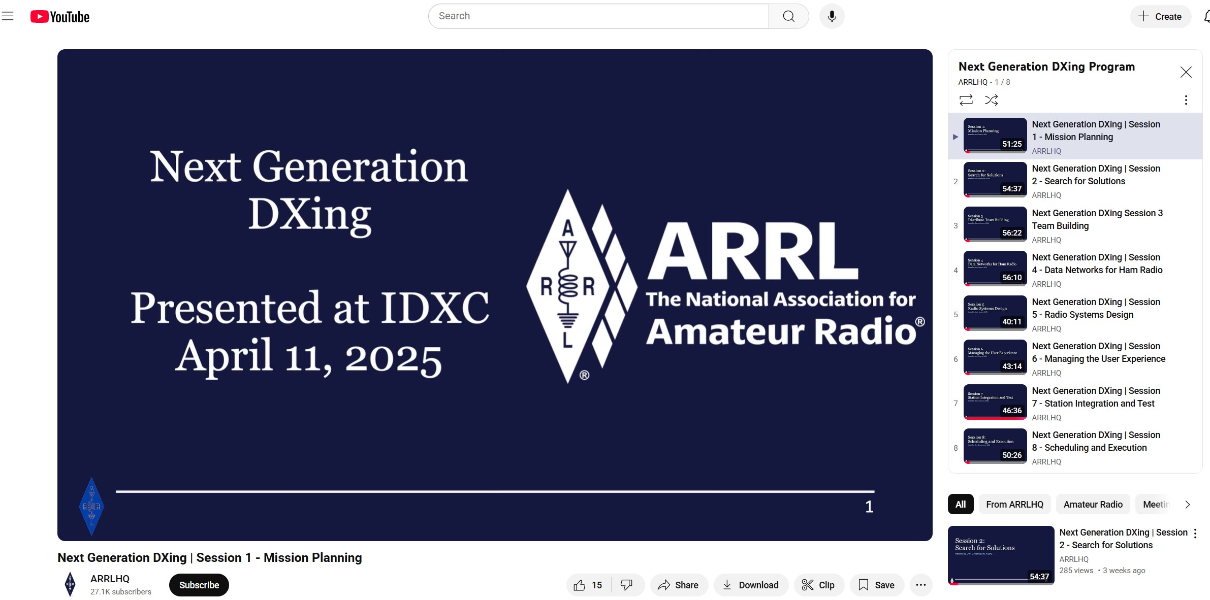 ARRL The National Association for Amateur Radio® has published an 8-video series about the Next Generation of DXing. The all-day seminar was captured at the 76th International DX Convention, held April 11—13, 2025, in Visalia, California. It featured expert panelists with deep knowledge of the current state of the art in the DXpedition world.