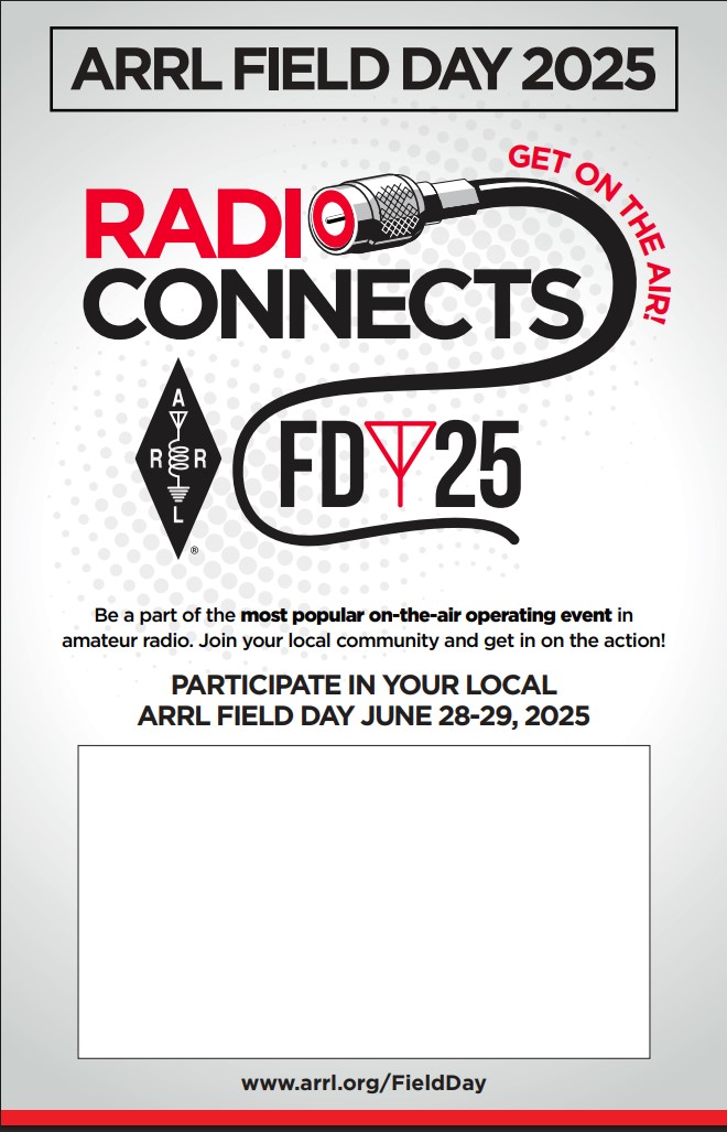 2025 ARRL Field Day will be here before you know it! We’re just 7 weeks away from ham radio’s biggest event, held each year on the 4th full weekend of June (28 – 29 for 2025). The theme of “Radio Connects” highlights the many ways amateur radio makes connections.