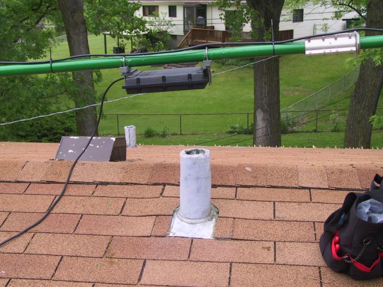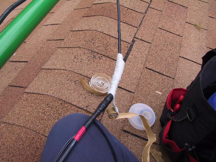 I filled my "roof bag" with tools, parts, tape and everything else I thought I might need. Sometimes I felt like an astronaut while working up there. If I forgot to take something with me, well, scooting back to the shack for the missing item wasn't so easy.
