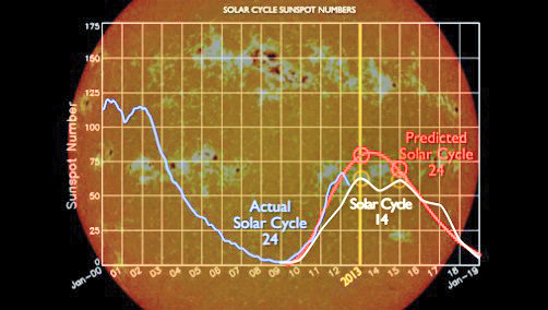 According to NASA, the current solar cycle -- Solar Cycle 24 -- should hit its “solar max” sometime in this year, but so far, solar activity has been relatively low. According to an article by NASA’s Dr Tony Phillips, this period of quiet has led some observers to wonder if forecasters missed the mark. But solar physicist Dean Pesnell of NASA’s Goddard Space Flight Center has a different explanation: “This is solar maximum. But it looks different from what we expected because it is double peaked.” Pesnell noted similarities between the current cycle and Solar Cycle 14, which happened between February 1902 and August 1913 and experienced a double peak. If the two cycles are in fact twins, he said that “it would mean one peak in late 2013 and another in 2015.”