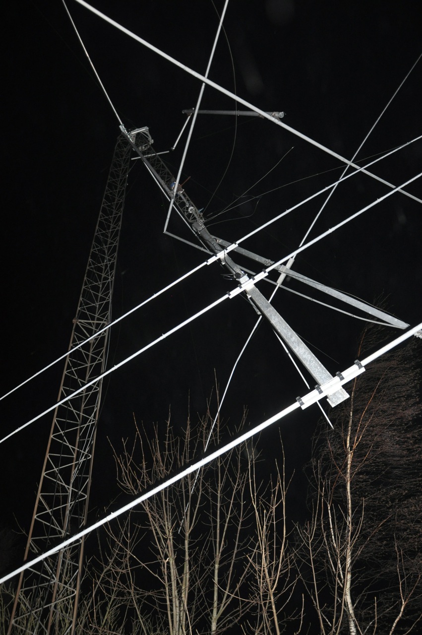Stormy weather over the weekend took down two major ham radio antenna towers in Finland and in Denmark. On December 6, Radio Arcala (OH8X) reported that its 330 foot tall tower near the village of Arkala that supported 160 meter and 80 meter Yagis literally fell victim to high winds that also took out power to some 200,000 homes in Finland.