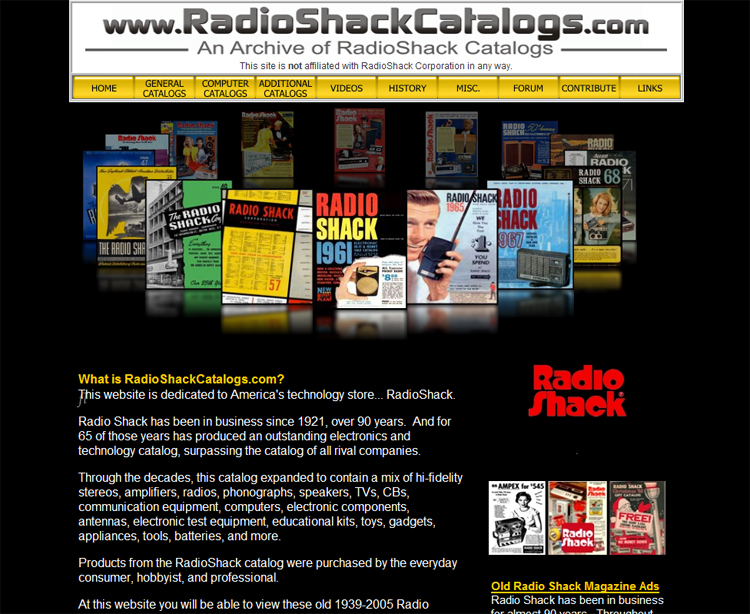 If you pine for the Radio Shacks of old, you can peruse their catalogs at the Radio Shack Catalogs Web site. For you Lafayette Radio fans, Phantom’s Vintage Catalog Collection has their catalogs online going back to 1939.