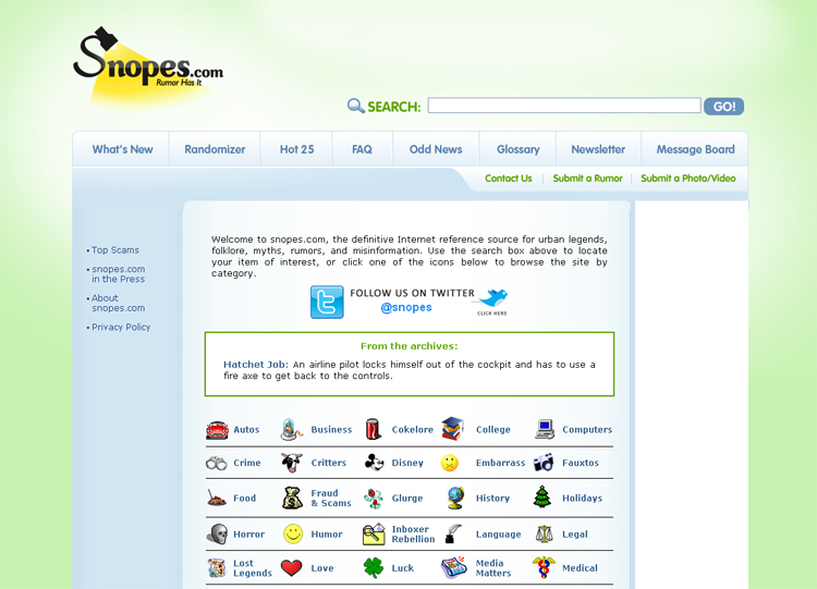 In addition to helping solve your e-mail mysteries, browsing the Web site and reading about the urban legends is interesting and entertaining.