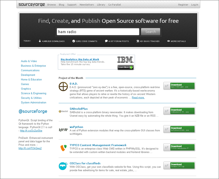 It has competitors, but SourceForge was the first to offer a free centralized location for developers to control and manage open source software development. SourceForge is the host for approximately one-third of a million open source projects including those in the ham radio realm.