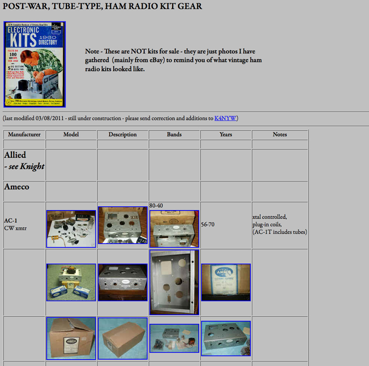 Heathkit has quite a following, as evidenced by the proliferation of Heathkit-related websites. The Heathkit Virtual Museum is probably the best representative of that bunch, but what about the other vintage ham radio kits? What about the EICOs, the Knight Kits, et cetera, et cetera?