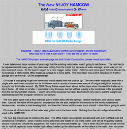 Roland Daignault, N1JOY, documents an unusual Amateur Radio homebrewing project on the Internet at www.hamcow.net. HAMCOW is an acronym for "HAM radio Communications On Wheels." Roland's mission is to build a mobile ham radio communications trailer that can be towed to remote sites for portable radio operations of the contest and public service variety.