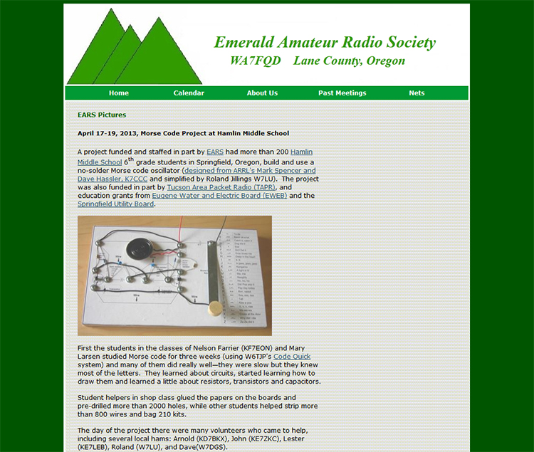 Today’s typical classroom is filled with computers, laptops, tablets and -- if you are lucky enough to attend a school like Hamlin Middle School in Springfield, Oregon -- ham radio equipment. Recently, 200 Hamlin 6th grade students built Morse code oscillators under the guidance of the Emerald Amateur Radio Society (EARS). EARS funded the project with the assistance of education grants from Tucson Amateur Radio Packet TAPR and two local utility companies.