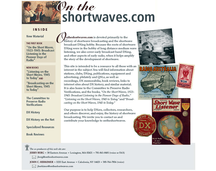 Jerry Berg and John Herkimer, WB2LNY, host On the Shortwaves.com, which is “devoted primarily to the history of shortwave broadcasting and the shortwave broadcast DXing hobby.”