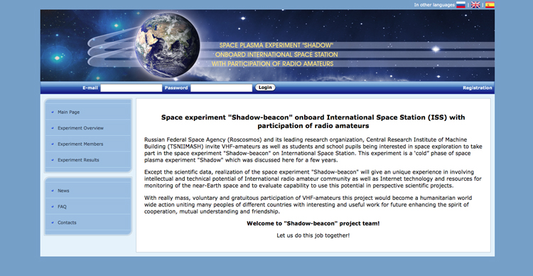 The Space Plasma Experiment “Shadow” on board the International Space Station with Participation of Radio Amateurs website details the experiment, as well as information on how you can participate.