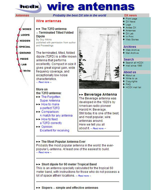 Last fall’s tree work cleared the way for more wire, so I want to hang new wire antennas off the tower. My favorite source for wire antenna ideas is the HCDX Wire Antennas page. The DXZone’s antenna page is another favorite.