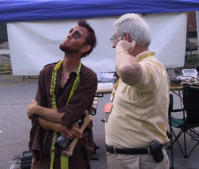 Kyle Ladd of the Zombie Squad had dropped by our ARES table during several hamfests. He was a very personable young man, but I still didn't quite know what to make of a group that purported to be preparing its members for zombie attacks. Eventually though, the subtlety of his organization dawned on me. The zombie hunters may be training for the arrival of hoards of the undead, but their preparations would be just as useful if, say, an earthquake struck. Or a flood. Or any other natural or man-made disaster. And they do, in fact, support a number of local and international disaster relief organizations and charities.