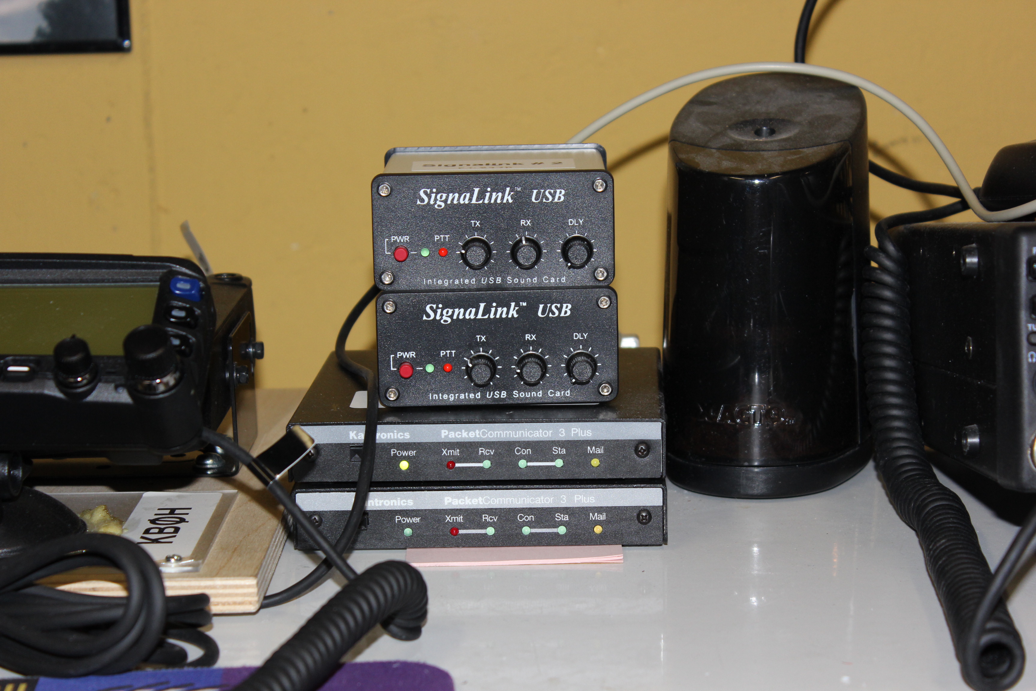 NBEMS uses sound cards (internal or external) rather than TNCs, so I had to come up with a different configuration. Fortunately, I had a Signalink external soundcard device for my newest radio and a Buxcomm Rascal soundcard interface for my oldest radio. I had already set up one computer with the NBEMS software, so setting up the second wasn’t too difficult. The only real problem I had was adjusting the sending and receiving volumes, since my two antennas were relatively close to each other.