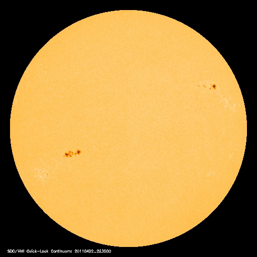 Currently there are four sunspot groups visible, and today could see a geo-magnetic disturbance from a slow-moving coronal mass ejection. Sunspot numbers for April 14-20 were 131, 124, 97, 67, 67, 76 and 90, with a mean of 93.1. The 10.7 cm flux was 118.7, 129.4, 119.2, 114.4, 111, 110.9 and 117, with a mean of 117.2. The estimated planetary A indices were 7, 6, 4, 5, 10, 6 and 16, with a mean of 7.7. The estimated mid-latitude A indices were 3, 3, 2, 2, 8, 4 and 11, with a mean of 4.7.