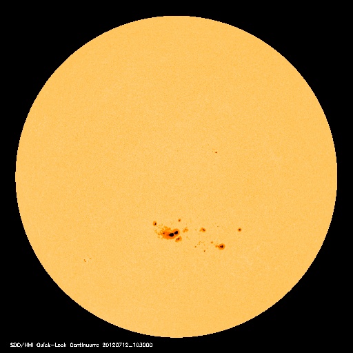 Over the past week, four new sunspot groups appeared. On July 7, group 1520 was new and on July 8, older group 1517 (visible since July 1) disappeared. On July 9, group 1513 (visible since June 26) was gone and 1521 was new. On July 10, group 1515 (visible since June 27) disappeared, and on July 11 group 1518 (around since July 4) was gone. On June 12, two new groups -- 1522 and 1523 -- appeared.