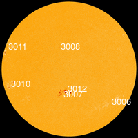"An intense solar flare of class X1.5 was observed on May 10 at 1355 UT in the active region 3006 with a complex magnetic structure. Radiation from the flare ionized the Earth's atmosphere and caused a shortwave radio outage around the Atlantic Ocean, more specifically from Central Europe to the east coast of the United States (see Dellinger effect). Radio transmissions at frequencies below 30 MHz were attenuated for more than an hour after the eruption.