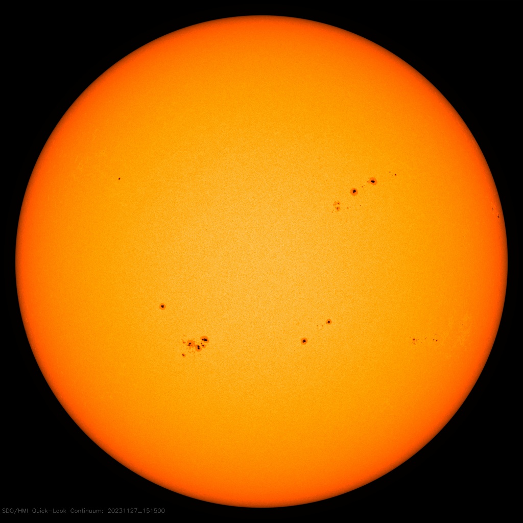 Sunspot numbers for November 16 through 22, 2023 were 28, 26, 39,