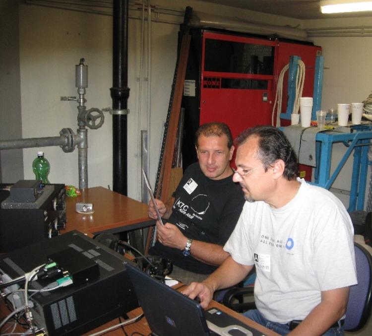 Soon we realized that participating during the whole 48 hours of the contest would not be possible. Security standards in the VIC require that a UN staff member be with visitors during the period of operation. Furthermore, access to the VIC during the weekends is only possible in a very restricted manner and requires early registration. Thankfully, Rom, OE1RKS; Alex, OE1AWB; Bernhard, OE3BLB, and Rainer, DL1DTN -- all employees at the VIC -- offered to stay with us during our contest activity. Needless to say this is unusual as normally all would rather spend their weekends with their families, instead of at their work location.