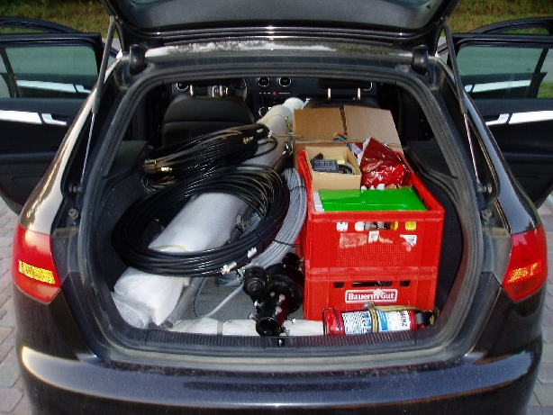 The antennas had to be installed the Friday before the contest. We used a Cushcraft A3S tribander (lent by Georg, OE1GPC) with a SPID rotator (from Manfred, OE1MB) for the higher bands. For 40 and 80 meters we had monoband dipoles, which were adjusted by Günther, OE3GCU, for a perfect low SWR. Installing the antennas was more difficult than we expected and took until sunset.