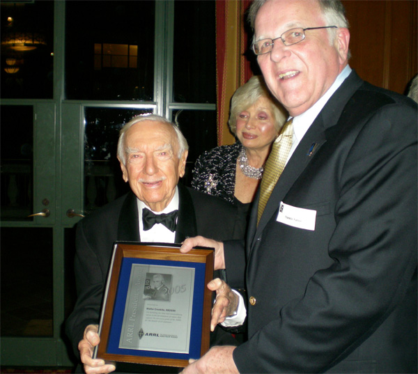 Before the RCA banquet and ceremony, ARRL Hudson Division Director Frank Fallon, N2FF, presented Cronkite with the ARRL President's Award. This award, created in 2003 by the ARRL Board of Directors, recognizes an ARRL member or members who "have shown long-term dedication to the goals and objectives of ARRL and Amateur Radio" and who have gone the extra mile to support individual League programs and goals. Cronkite was selected to receive the award in April 2005 in recognition of his outstanding support of the ARRL and Amateur Radio by narrating the videos Amateur Radio Today and The ARRL Goes to Washington. "It was quite a thrill to make this presentation to Cronkite," Fallon said. "He has long been recognized as the 'most trusted man in America,' so lining our causes to his face, name and voice has been a great help."