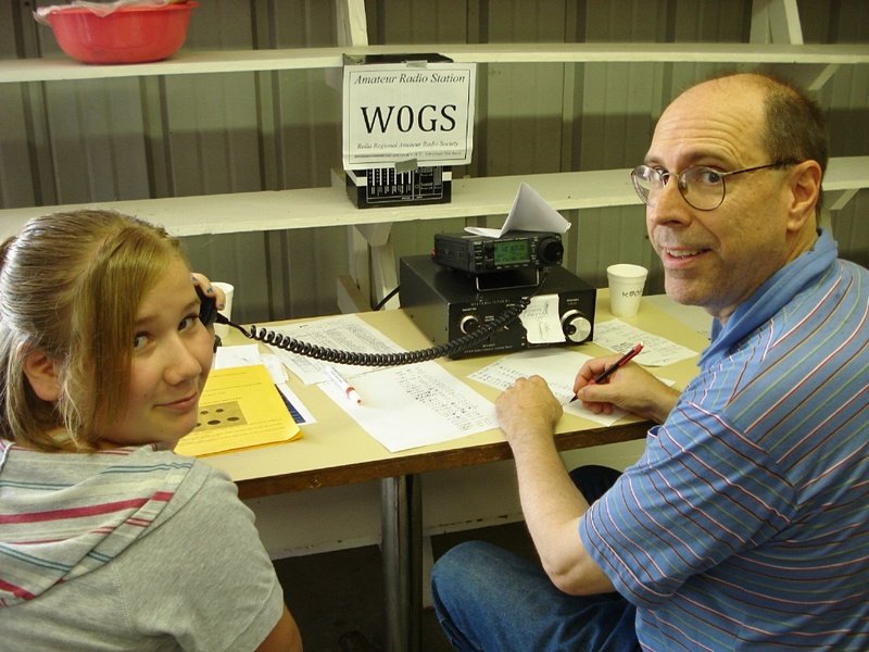 I suppose the apparent curiosity between the two of us sparked the voice operator to let us take over. I jumped at the opportunity, but upon putting on headset, I was a bit overwhelmed, and experienced what some newer hams call “mic fright.” Soon, however I started to make a few contacts while Nicole searched and pounced on keyboard keys, logging the QSOs on a computer. I soon picked up momentum like a train. I began to make contacts almost as fast as the seasoned HF operator did and even he was surprised. Even more overwhelmed was Nicole, frantically typing the call signs, states and classes of the contacts. We took a break to enjoy a barbecued dinner and came back to the operating, having switched positions. Nicole enjoyed tuning around and made quite a few contacts.