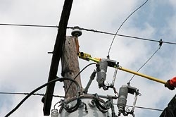 Power-line RFI repairs typically involve eliminating an arc of some type. As we discussed previously, the arc occurs in an air gap located between two conductors on a pole or other source on the structure. The conductor materials can be wood, metal, dirty insulators -- just about anything that can conduct electricity -- and not necessarily a primary conductor. Arcs can occur for several reasons, including loose hardware, a cracked insulator, tracking, corrosion between two pieces of metal, or a loose tie wire. Since a difference in potential across a gap creates the arc, it stands to reason that eliminating the gap can repair most power-line RFI problems.