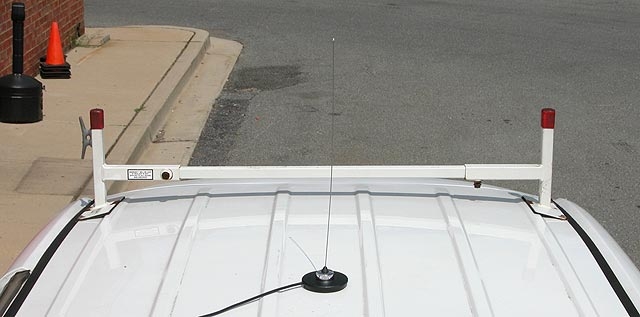 - A 140 MHz-150 MHz or higher whip antenna used to locate the source structure. This antenna can be easily installed on a vehicle with a magnet base for this purpose. While this antenna does not have directional capabilities, you can use it for monitoring relative signal strength as you approach the source. See Figure 13.