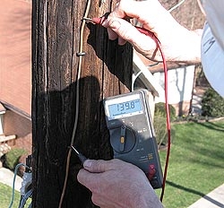 Once we receive an RTVI (Radio and Television) complaint form, we'll proceed to the complainant's neighborhood. We then track down each of the power-line interference sources we find in the neighborhood. We'll typically find several sources and list them on a repair request and send it to the line department for repairs.
