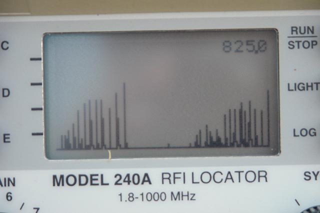 Another important clue can be obtained by tuning the DDF receiver up in frequency. Listen to the noise at VHF and UHF and make note of the frequency at which it starts to diminish. This frequency can provide an important clue as to the proximity of the source. The closer the source, the higher in frequency you can receive it. If the noise can be heard at 440 MHz, you can expect it to be relatively close by -- perhaps within less than a quarter mile radius. If it diminishes around 4 MHz, however, the source can be over a mile away.